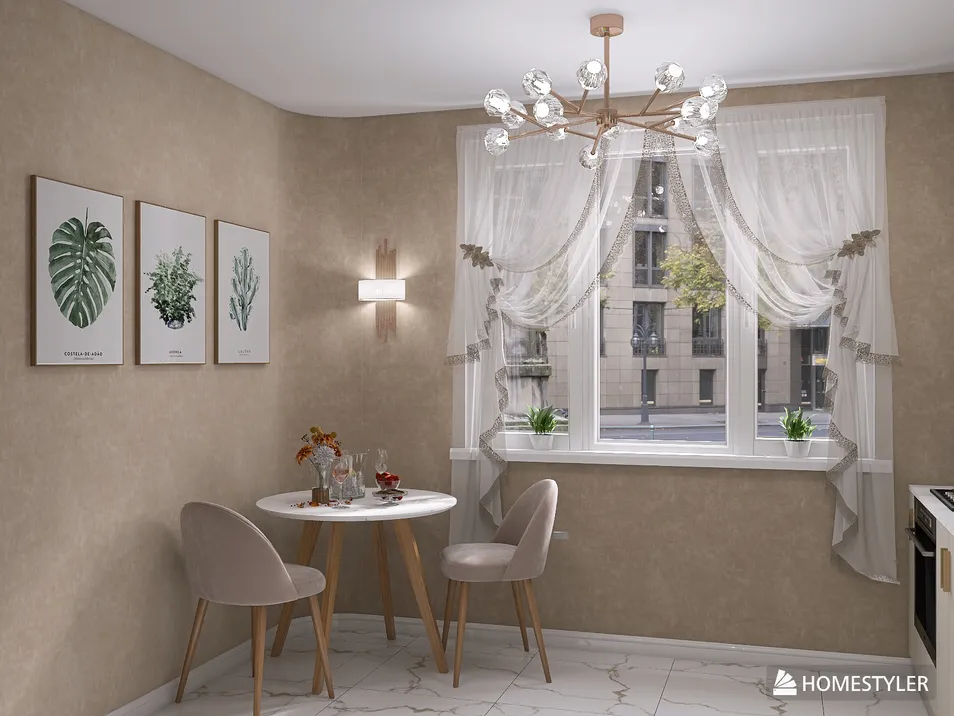 Кухня, как оазис уюта, предлагает гармонию света и формы. Нежные оттенки стен, изящные линии мебели — это приглашение к тихому разговору за чашкой кофе, где каждый элемент, словно нотка в джазовой мелодии, создает атмосферу непринужденности и стиля.