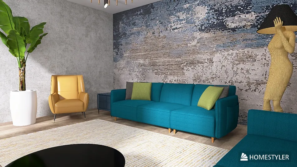 В этом пространстве, где яркие акценты сливаются с мягкими текстурами, царит атмосфера творческого безумия. Уютный диван шепчет о вечеринках, а светильник в форме женщины словно замер в танце, подчеркивая дух богемы. Каждая деталь здесь — как строчка из незаконченного романа.
