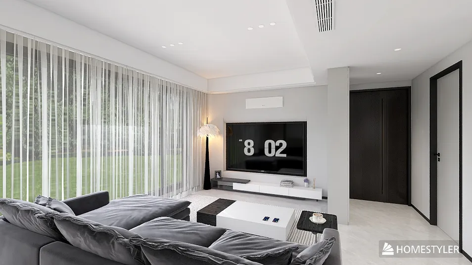 這座自蓋別墅的室內空間,以簡約而不失優雅的風格,展現出現代生活的舒適感。寬敞的客廳與自然光交融,營造出一種放鬆的氛圍,讓人不禁想要沉浸其中。