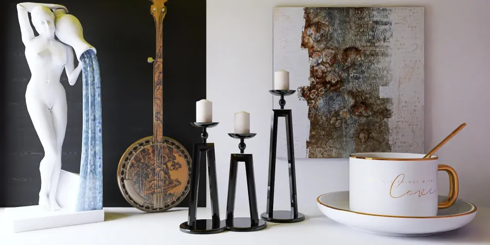 In the corner, a Zen coffee cup waits, untouched. The banjo's silenced strings echo tales of solitude, while candles flicker like unspoken thoughts. A figure spills water, yet the room feels parched—each detail a reminder of what remains unsaid in the hum of urban life.