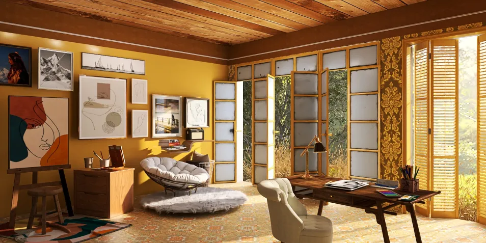 A place for everything; to draw, paint, or lounge in the afternoon sunlight. A collection of artwork proudly displayed and illuminated by lots of natural light. The cool breeze and scent of wildflowers drifting through the open windows mingling with the sounds of birds in the trees.