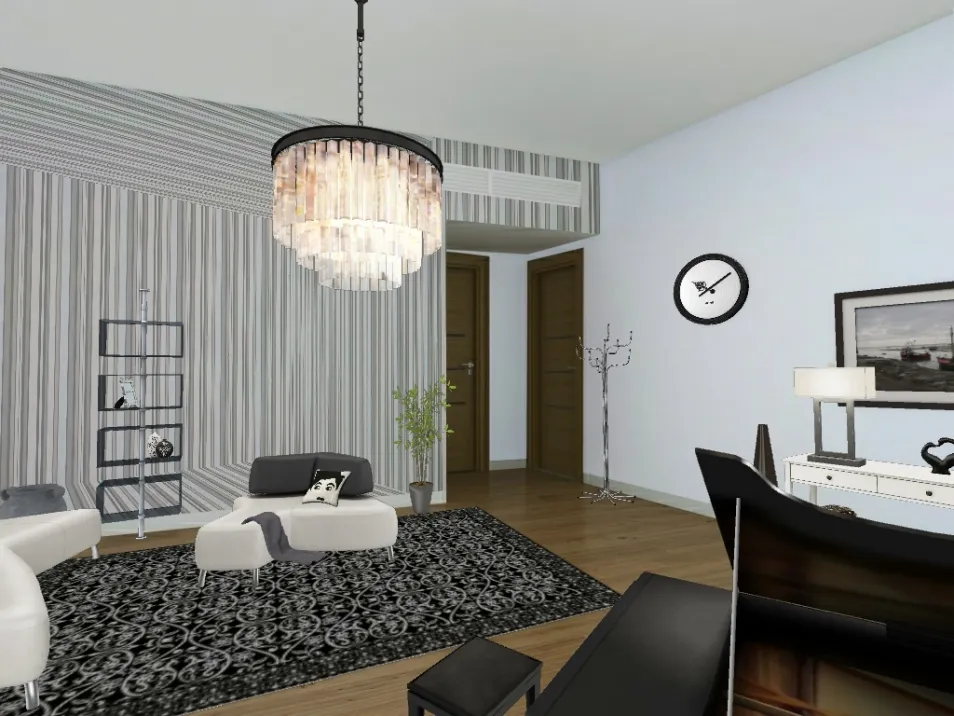 a black and white bland sitting room for company