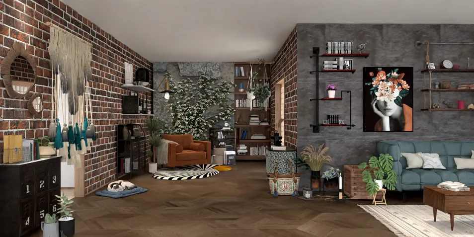 An eclectic, cluttered livingroom with a small reading nook attached. 📚
