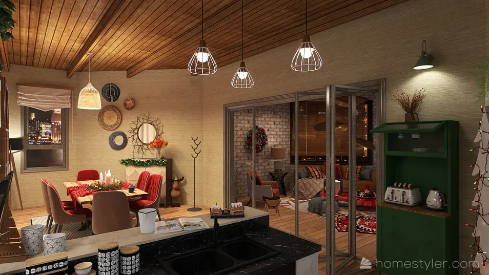 Warm tones and natural vibes, without missing classic red and green for this christmassy design.