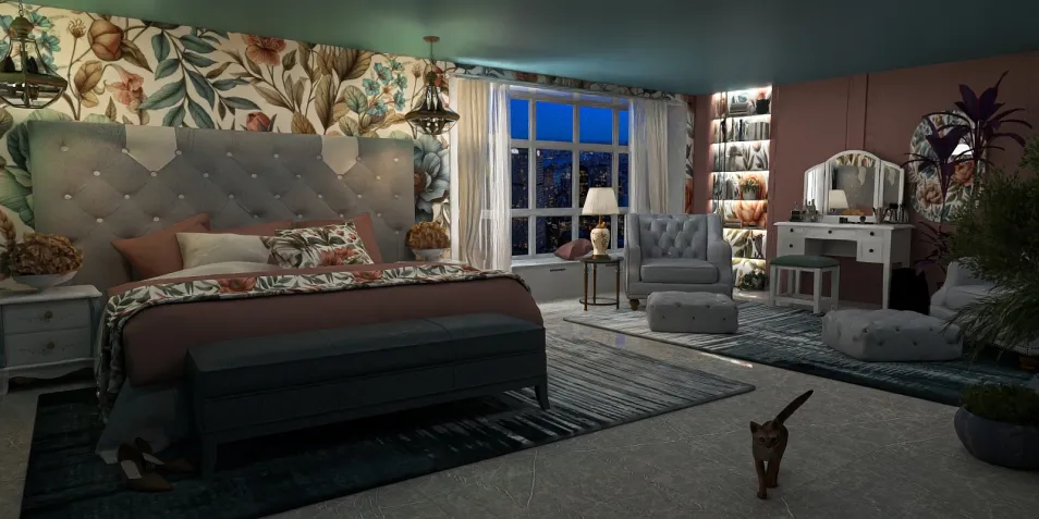While there is cross over, they are different. Country incorporates pastels and bright colors, with vintage furniture (or 2nd hand) with a more traditional vibe. Country is more cozy while rustic is more raw, natural materials wiry a weathered, rugged look. I started out doing country style when doing this design. Because the challenge was labeled Country Industrial. I thought the rustic challenge was a different challenge. So I decided to just do a Country City bedroom....quiet protest lol I'll try to do a rustic/industrial next
