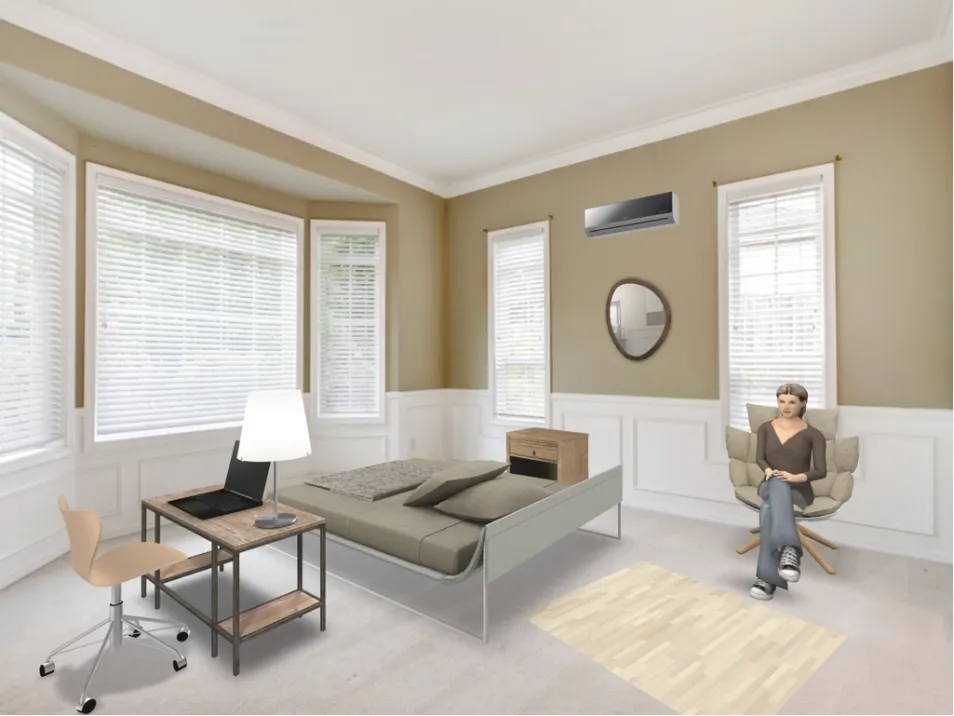Este cuarto tiene un escritorio en el que puedes trabajar. Aquí se está estudiando diseño de casas.