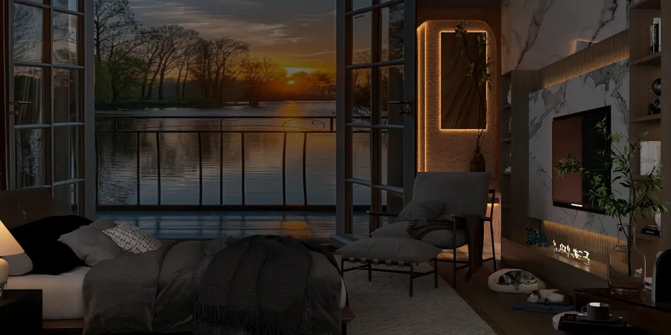 As the dawn unfurls its golden petals, a room draped in opulence whispers of dreams yet unchased. Velvet shadows dance on marble, while the lake cradles the sun's tender sighs. Ah, in this gilded cocoon, one might muse—are we the architects of our fate or mere spectators in an extravagant play?