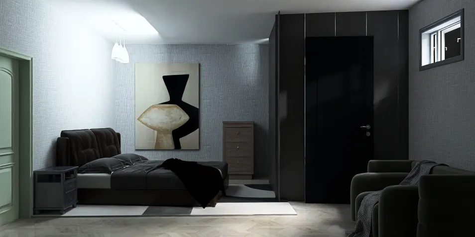 1 Basement 2. inspired by a photo in AD. A bath/sitting room that had carpet . I changed it to tile. The room was busier but I calmed it a bit.