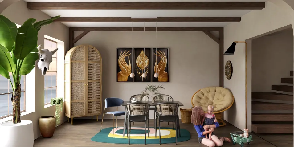 jolies pièces de vie rustique et coloré qui apporte du positif ou un cocon familial s’épanoui imaginer vous dans cette sublime pièce en temp de pluie à jouer avec votre magnifique petit bébé pendent que papa travaille alors ça fait rêver non
