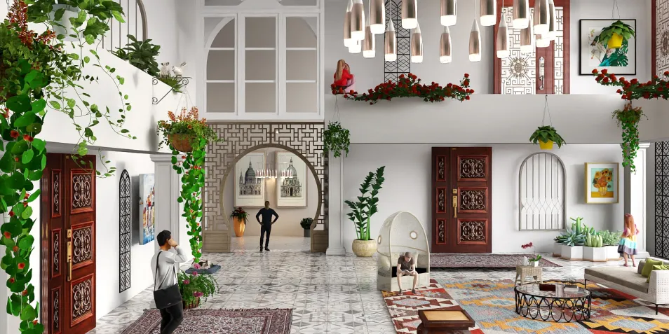petite immeuble aux Maroc avec un petit salon de thé ou détente pour les personnes