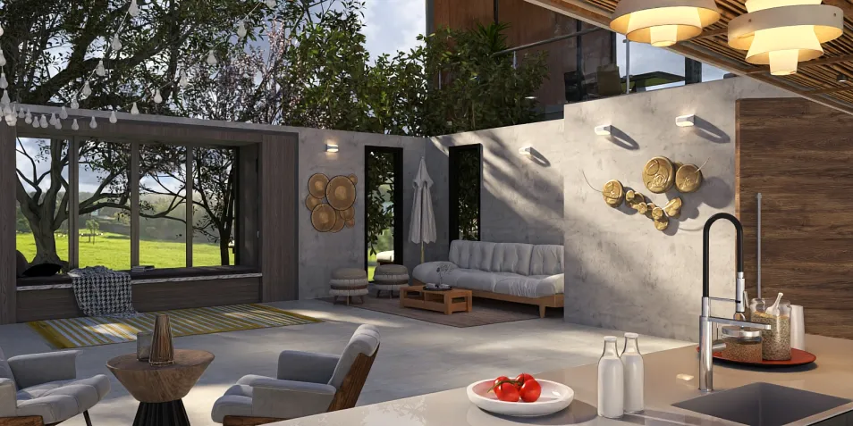 living between indoors and out — a kitchen that opens to nature, bathed in light and calm