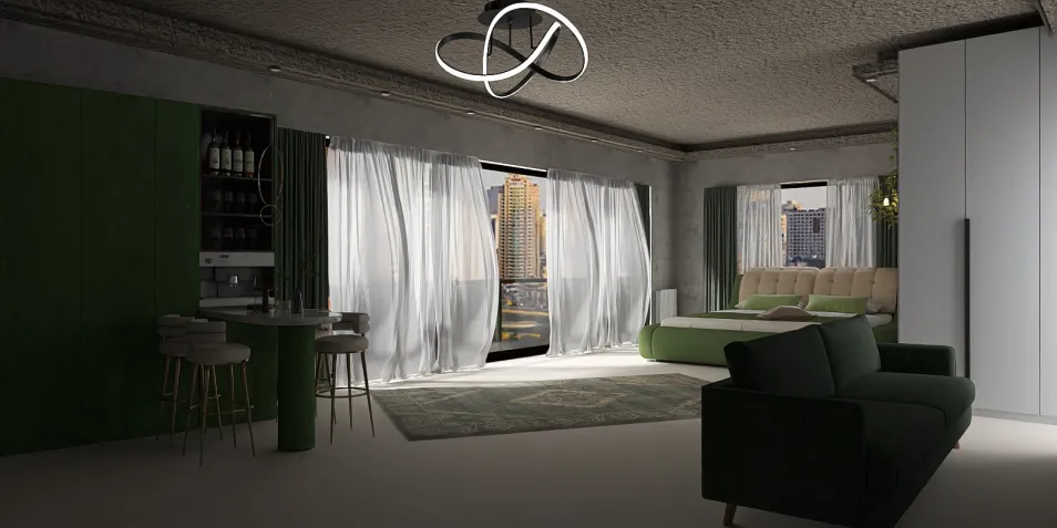 Open plan studio apartment