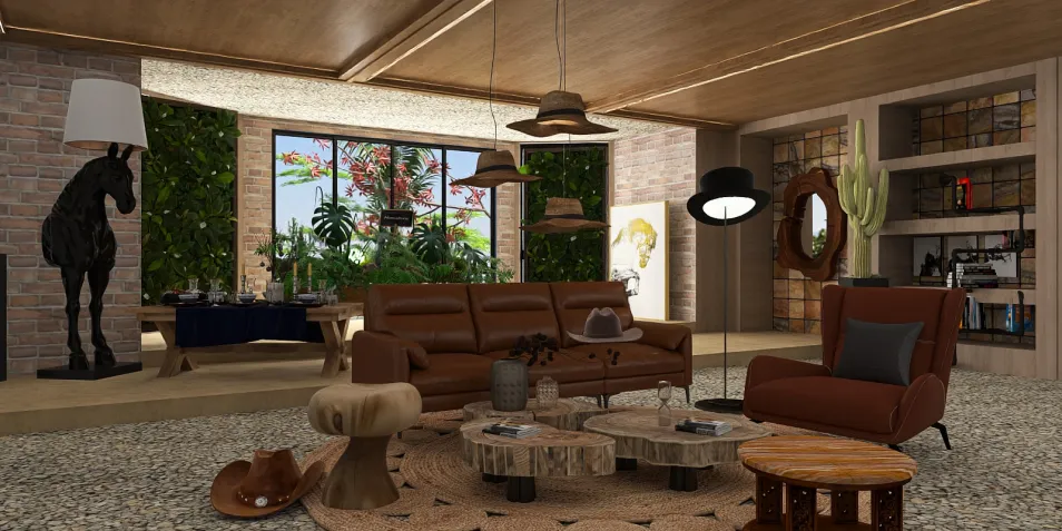Apartamento estilo vaquero del medio oeste, decorado en tonos cálidos en cuero y madera.