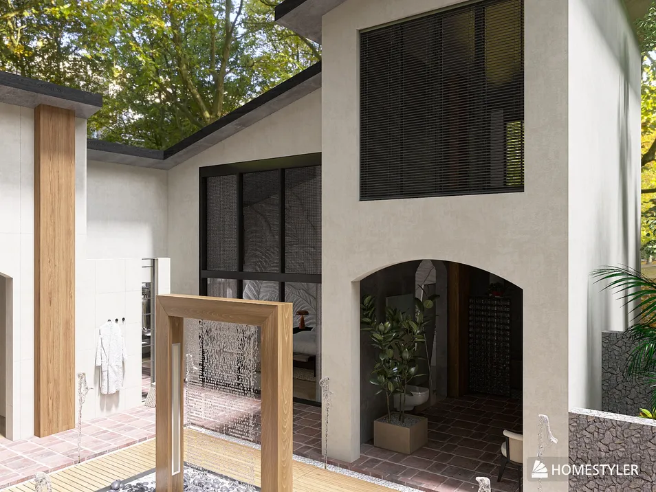 Harmony blends nature to living. The spacious courtyard and side yard include a private outdoor shower, waterfall shower, fire pit, pool, and plenty of seating. The house is effortlessly connected through open doorways that invite the sights and sounds of the surrounding area. A luxurious kitchen with neverending countertops leads to a sunken living room filled with a lifetime supply of books. Large doors provide easy access to the sunlit courtyard, which wraps around half of the home. I hope you enjoy!