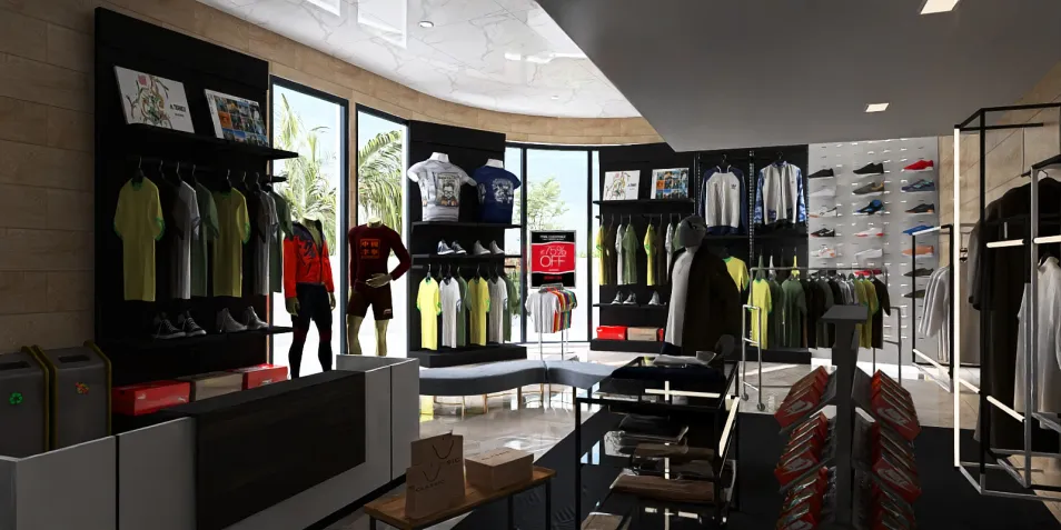 Neste espaço, as prateleiras minimalistas em preto contrastam com as cores vibrantes das roupas, enquanto as grandes janelas permitem que a luz natural crie um ambiente acolhedor. Cada item exibe uma história, convidando os clientes a explorarem suas próprias narrativas.