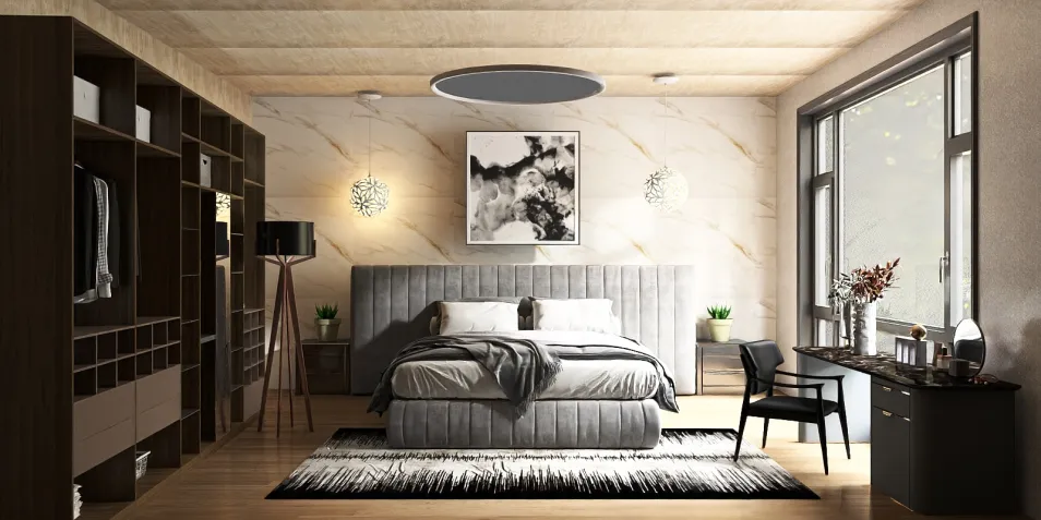 Neste quarto, a harmonia entre o minimalismo e a elegância se revela. A paleta neutra, com toques de madeira e texturas suaves, cria um espaço acolhedor. A iluminação destaca cada detalhe, transformando o ambiente em um refúgio de tranquilidade e estilo.