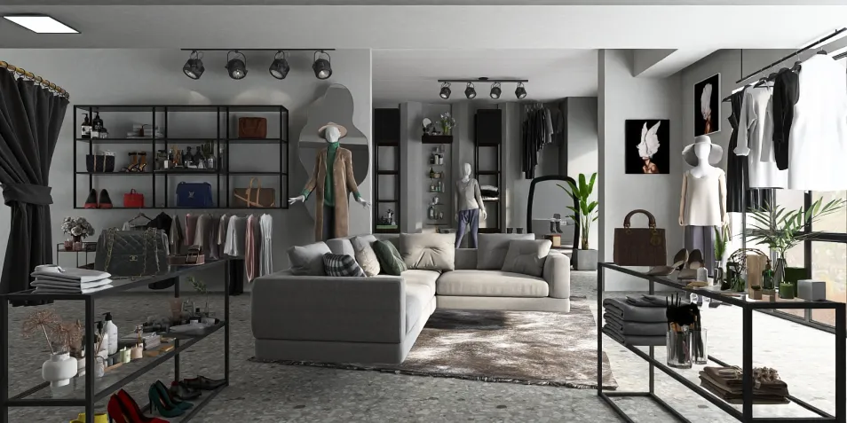 En este espacio, la fusión de elegancia y funcionalidad se manifiesta. Los estantes metálicos sostienen una variedad de texturas, mientras que la luz natural resalta cada prenda. Un rincón de ocio invita a la contemplación, donde cada objeto cuenta una historia de estilo.
