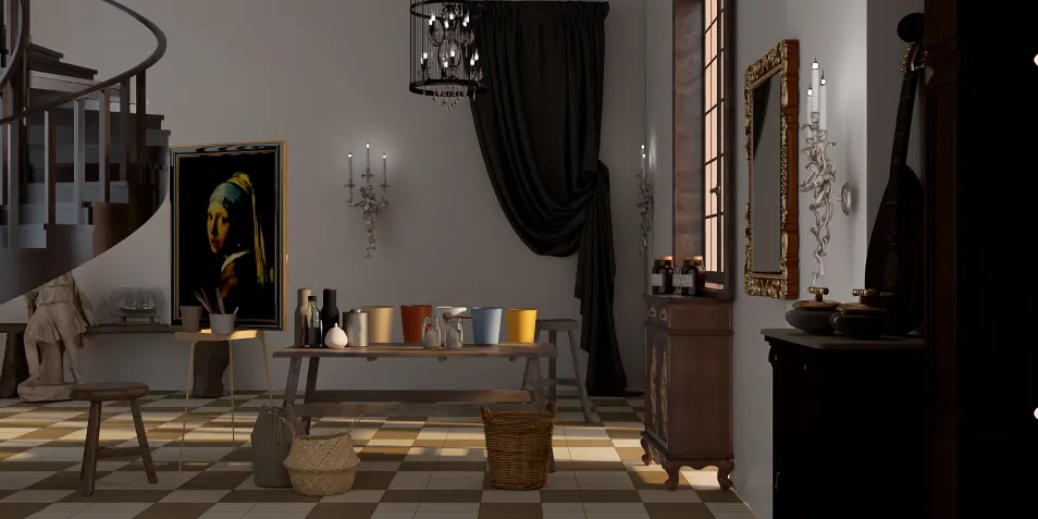 As Griet cleans Vermeer's studio, which Catharina never enters, the painter begins to converse with her and encourages her appreciation of painting, light, and colour. He gives her lessons in mixing paints.