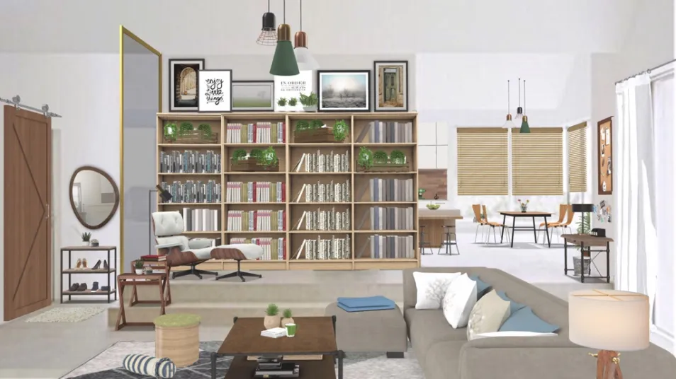 Like the morning sun that shines through the big windows... a suite of sturdy wooden furniture splayed across the open layout. A small library of classic collections mixed with the green crates gives a fresh touch to the look 😉 thank you @Zero zero for the template. Miss ya 😘