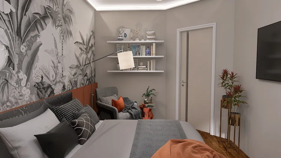 The bedroom is in light and calm shades with an accent one color. An entrance hall in a modern design for the customer.