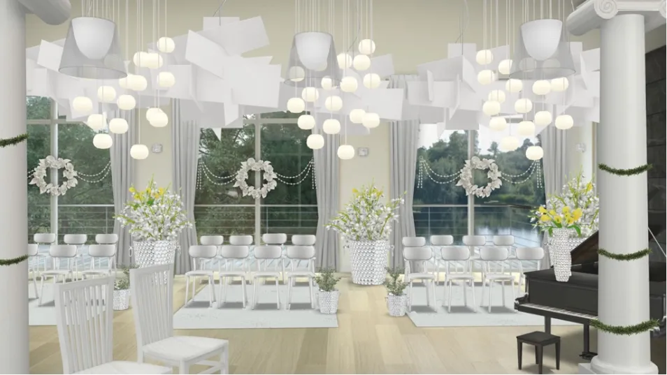 The lake and its surroundings really would be all the natural decor needed ....the white doesn’t compete with the outside beauty 🍃🌿🌳🌱🌔