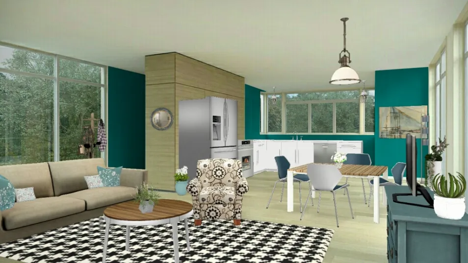 living room, dining room, and kitchen