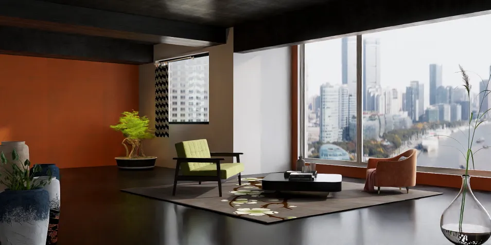 simple living room design, yet modern and sophisticated...don't know why lady w flowers pic isn't showing up on burnt orange wall...#glitch?