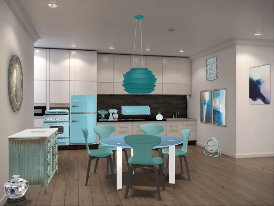 I did a blue,kitchen theme with objects only from the Trend : Blue Section.
