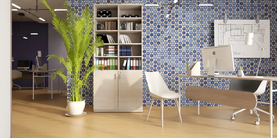 In einem Raum, wo klare Linien und sanfte Farben harmonisch verschmelzen, entfaltet sich die Freiheit des Schaffens. Eine Pflanze, die unermüdlich wächst, erinnert uns daran, dass selbst in der Kühle des Designs Leben pulsiert. Hier wird Arbeit zum Erlebnis.