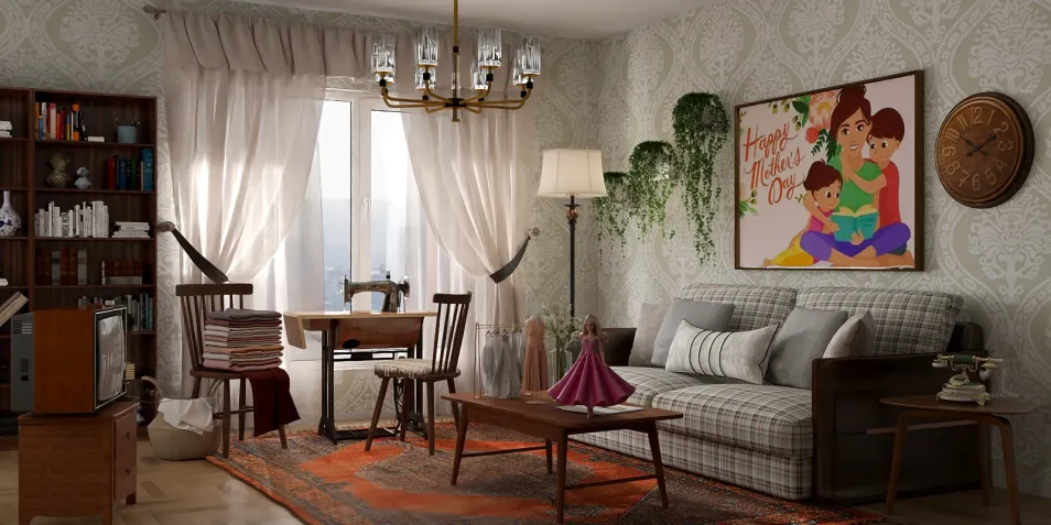 When I was little, my mother sewed clothes for my Barbie doll according to all the rules of sewing adult clothes. These clothes were more elaborate than the branded Barbie clothes. The project is a living room similar to the one in which my mother sewed, and I watched her in anticipation.