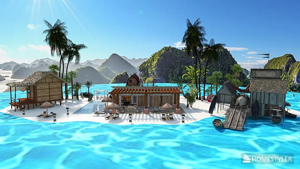 Private island. This project was created before the Outside Area function Filet appeared. With the advent of this function it became possible to make the island less "angular" in shape. See comment.