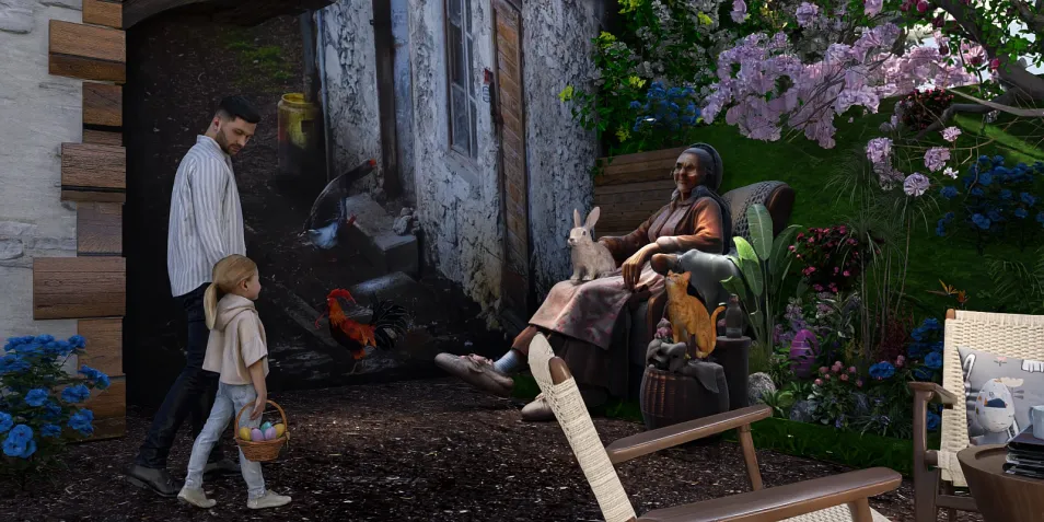 1.My traditional Design:The little girl found so many hidden Easter eggs that she got the reward, a cute fluffy bunny🐇.....