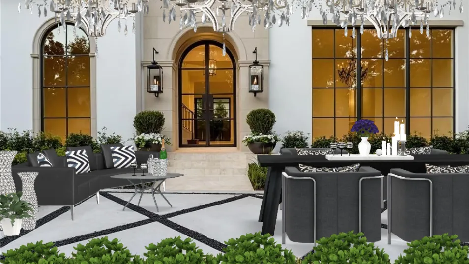 Masculine glam backyard patio to entertain with champagne on ice under a canopy of crystals.