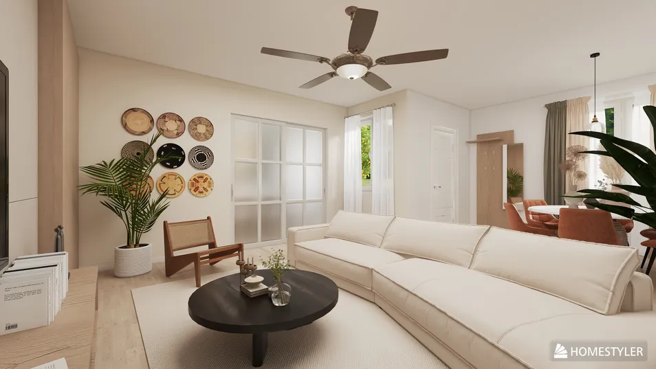 Concetto di progettazione:Progetto di Interior Design e suddivisione spazi di un manufatto in cemento; progetto di arredamento completo. Applicazione della funzione AI:Ho utilizzato in diversi ambienti l'opzione ''Decor AI'', nel bagno ho utilizzato un intero ambiente, nel soggiorno, Cucina e Camera Matrimoniale ho utilizzato suggerimenti di abbinamento Arredi, Finiture e Colori. Lo stile della Casa è un mix tra Japandi e Organico, con colori neutri e utilizzo del legno in varie tonalità. Ho inserito il Logo Homestyler nelle librerie delle camere. Tema della competizione:L'AI di Homestyler per promuovere uno stile di Casa vicino alla natura. Stato del progetto:Non è implementato