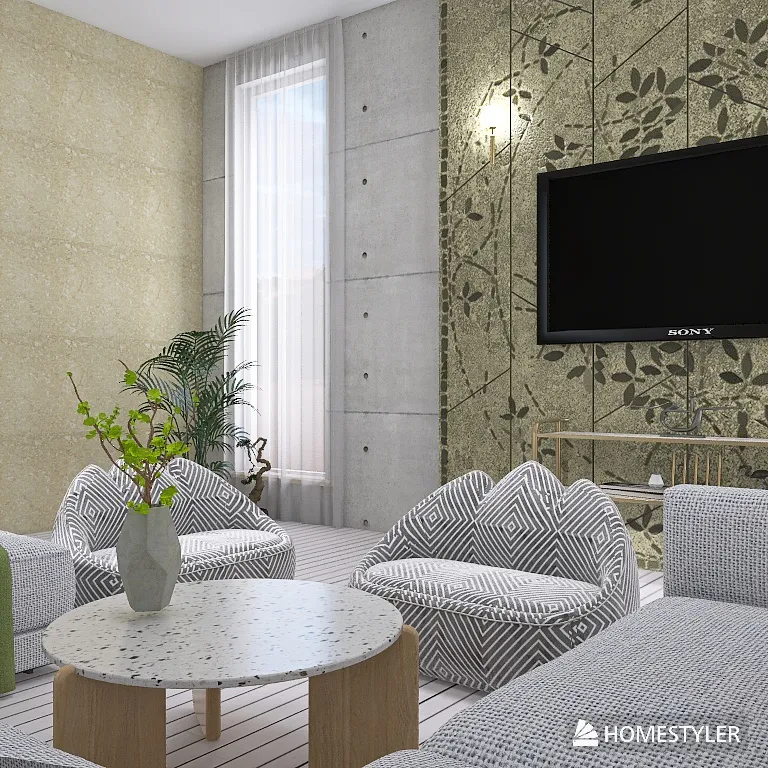 Relaxing place for all family. The color scheme conveys calmness ,and the plants give comfort and warmth to the cold walls..