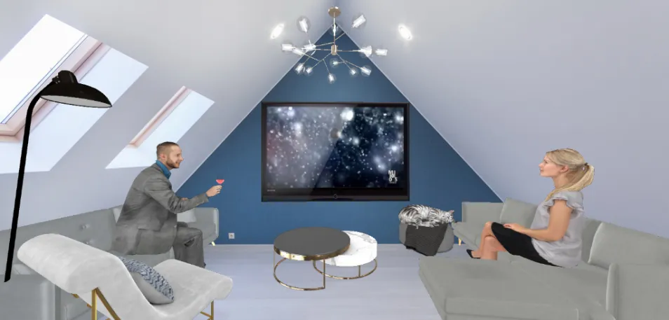 sala de cinema em tons azuis e acinzentados com o máximo de conforto muita luminosidade que pode ser tapada ou excluída e um grande espaço familiar.
