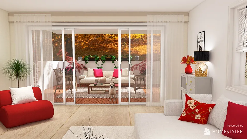 Salon,comedor,cocina y terrazas con pinceladas de magenta