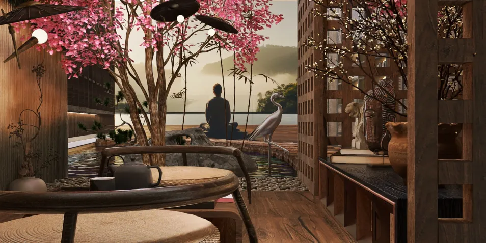 A peaceful space for meditation, inspired by the elegance of Japanese tea rooms. It serves as a place of hope and healing, providing comfort to those facing challenges like mental health struggles. The serene environment fosters inner peace and balance.