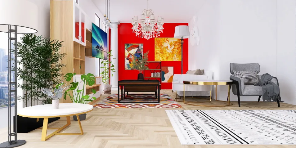 This poppin’ living room originates from street art. With rustic shelves, you can’t disagree. But not everything is street art…