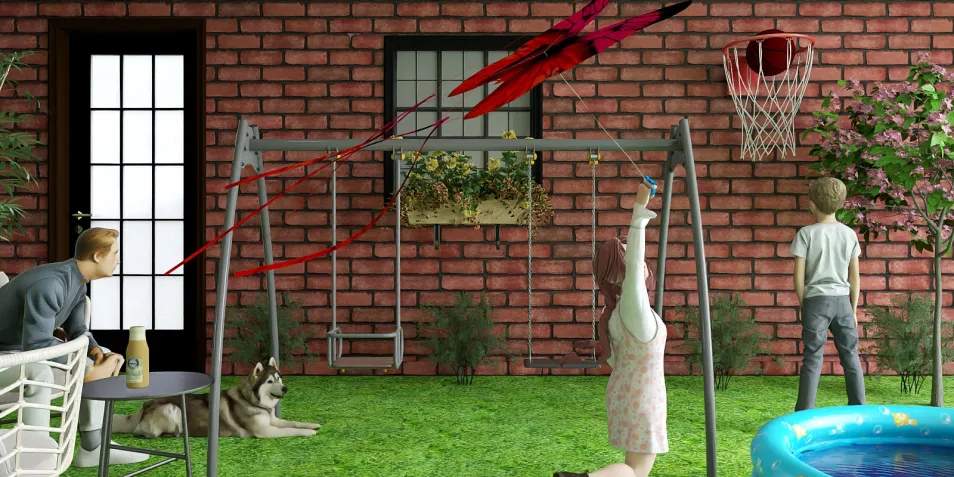 Letter P design 2, Play. Playing in the backyard as dad watches
