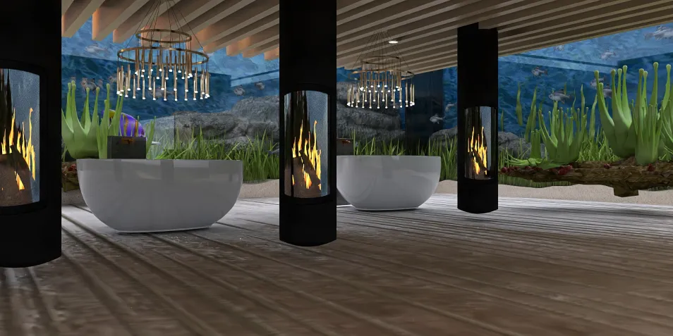 In this design, Aquarium Spa refers to a serene and tranquil environment where the calming essence of the sea is brought indoors. The use of crisp white tones creates an airy and light atmosphere, while subtle accents of soft blues and coastal elements evoke the peacefulness of an underwater sanctuary. The design features two elegant tubs and four lounging beds, offering plenty of space for relaxation and rejuvenation. The open, airy layout and modern furnishings enhance the soothing spa experience, making it the perfect retreat. @homeseek Any feedback?@Sharon for your spell April challenge