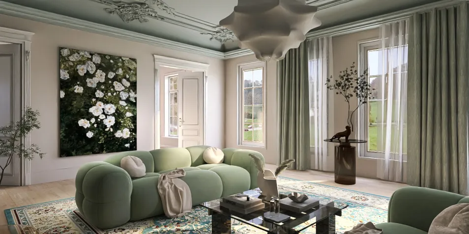 This exquisite Living room is screaming spring with its floral art focal point and furnishings that flow with in the space. @Nathaliedu Mortier https://www.instagram.com/sanctuaryforthesouldesigns?igsh=NTc4MTIwNjQ2YQ%3D%3D&utm_source=qr
