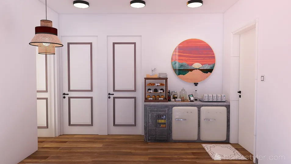 This is the third of a series of 3 photos. The owner was asking for ideas on what to put on the stairs landing. I said some would even have a mini pantry for those midnight cravings.. :)