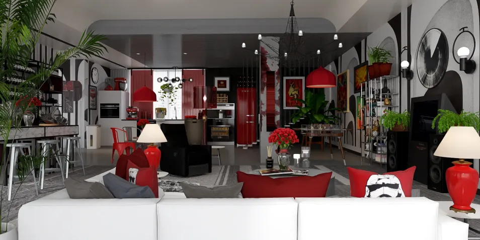Living room and Kitchen with Dining and bar area ♥️♥️