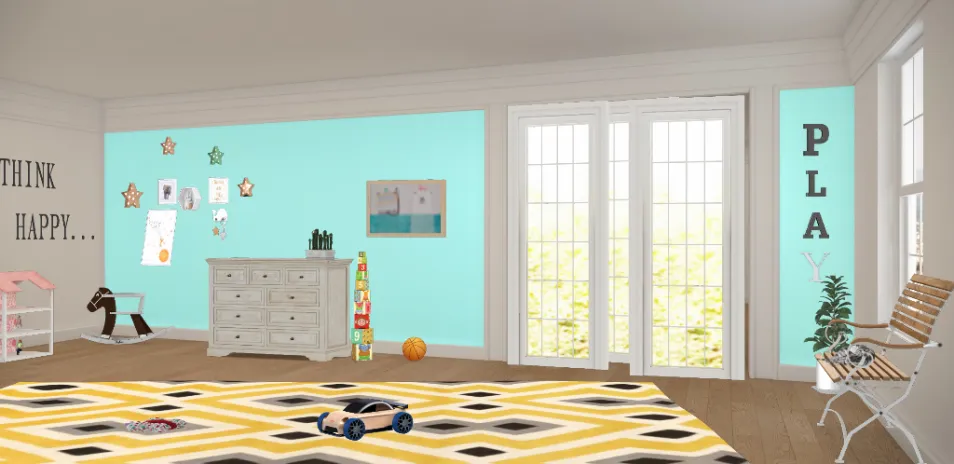 This is a playroom that is open and quite bright with a blue accent that just brings happiness to the eyes who see it the carpet accents the room perfectly there is no doubt in my mind that any child would thing this room is boring and isn't perfect for play this was a quick and easy design that I was able to finish in seconds.