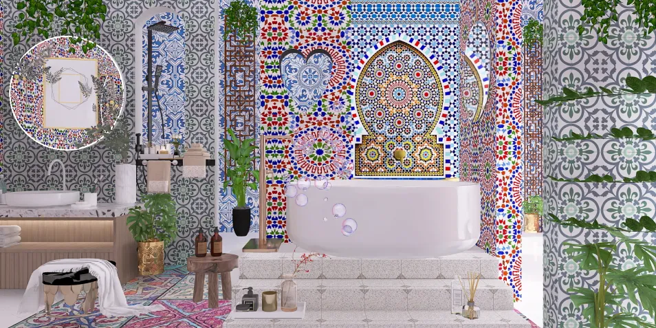 Zellij is a style of mosaic tilework made from individually hand-chiseled tile pieces and find it's origin in Morocco. The word “Zellige” in Arabic means “polished stone” or “tile”. Today there are endless combinations of Moroccan tile patterns (squares, triangles, diamonds, and many more…). They represent the perfect union between mathematical and artistic design.