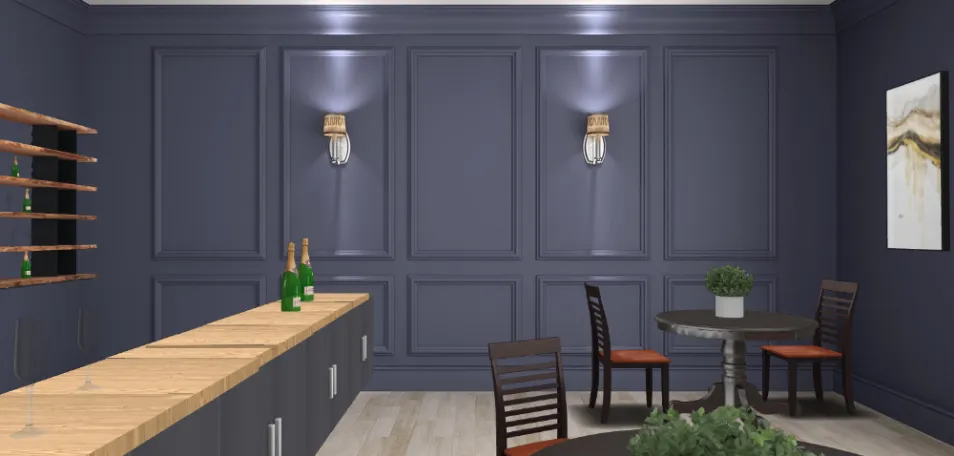 This is a dark, true bar. This bar is fully equipped with glasses, tables, chairs and especially the alcohol. It is dark and quite manly because that's the way I picture a bar, i mean I'm only a couple years too young. So please help me win this contest I havent son anything YET so it would mean the world to me if you guys could help me out.