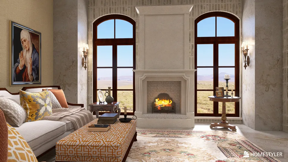 This house was built with the warmth and bounties of the Tuscan valley in mind. In this pictures you'll find the story of a Tuscan lifestyle as showcased by the main living areas. They used the warm clay brick on the outside and brought it inside as well and was accompanied by the natural stone floor and rich deep wood colors. The color palette was taken from the warmth of a Tuscan sunset and was spread in different tones and patterns throughout all the spaces.