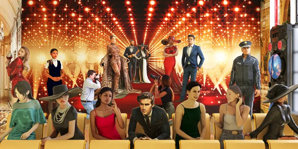 In a realm where lights dance like constellations, shadows weave stories of forgotten dreams. Each figure, suspended in time, reflects the cosmic interplay, revealing the hidden architecture of desires. Here, the fabric of reality is stitched with the luminous threads of imagination.