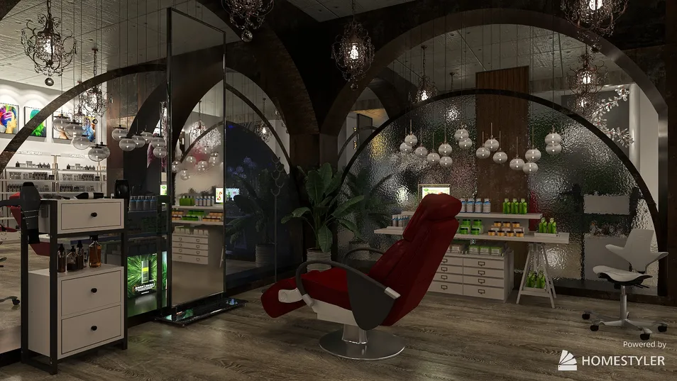 I usually have a story in mind when I do my design projects. But not this time, which makes it harder to find the right inspiration. This is my third attempt and I feel quite satisfied now. Got in, the elements that I like. I call it a Scandinavian industrial beauty salon.